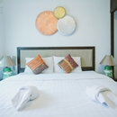 In the concern of the privacy and partition issue, a 1-bedroom Suite is functionally designed with separated sections, living area and a bedroom. Both rooms have an access to the bathroom and their own balcony. A kitchenette with the full set of cooking facility is provided in the living area along with sofa and dining area. This ensures that guests will have 2 totally separates sections to enjoy their chosen lifestyle.